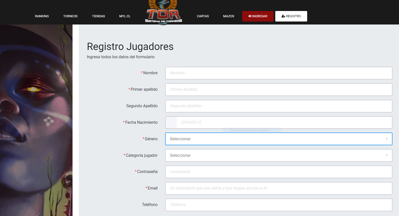 Paso 1: Ingresa a http://torneos.myl.cl, y haz click en el botón “Registro” que aparece en la parte superior derecha de la pantalla, como indica la imagen.