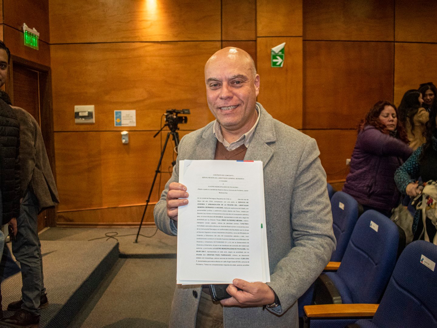 Esta tarde, la Asociación Juglares estuvo representada por su presidente subrogante, Diego Grez Cañete, en la cuenta pública del Ministerio de Vivienda en la región. En este evento, que tuvo lugar en el auditorio municipal de Pichilemu, se vivió un momento histórico tanto para nuestra organización como para la comunidad: el director del SERVIU, Omar Gutiérrez, firmó junto al alcalde de Pichilemu, Cristian Pozo, el comodato del inmueble de la multicancha.