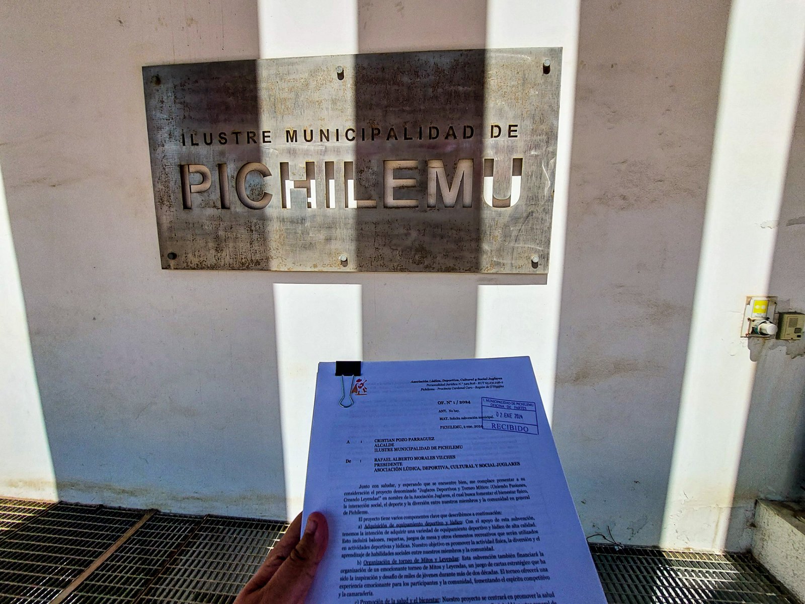 La Asociación Lúdica, Deportiva, Cultural y Social Juglares anuncia con entusiasmo la presentación oficial de la solicitud de subvención a la Ilustre Municipalidad de Pichilemu para el año 2024. Esta petición, aprobada en sesión del directorio el 20 de septiembre de 2023 y rectificada el 15 de noviembre del mismo año, fue formalmente presentada el martes 2 de enero de 2024 en la oficina de partes de la municipalidad por el Secretario Diego Grez, en representación de nuestro Presidente Rafael Alberto Morales Vilches.