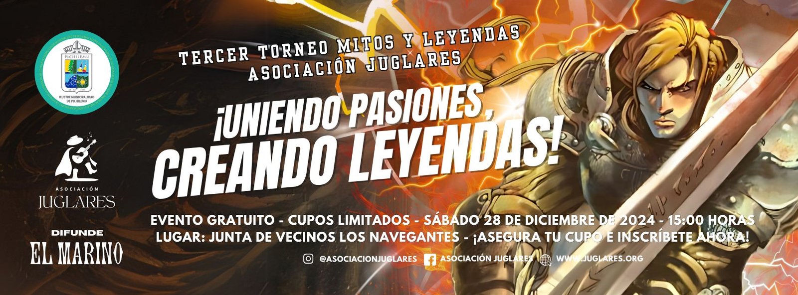 El 3.° Torneo de Mitos y Leyendas “Uniendo pasiones, creando leyendas” se llevó a cabo el sábado 28 de diciembre en la Junta de Vecinos de Los Navegantes, reuniendo a 15 jugadores de Pichilemu, Marchigüe y La Estrella. El evento, organizado por la Asociación Juglares y auspiciado por la Municipalidad de Pichilemu, destacó por ser un evento pionero en su tipo, el primero apoyado por el municipio. Durante la inauguración, concejales y organizadores reafirmaron su compromiso con la comunidad y la recuperación de la multicancha del sector. Cristian Reis y Diego Grez, representantes de Juglares, enfatizaron la importancia de generar actividades que integren y fortalezcan a los vecinos.